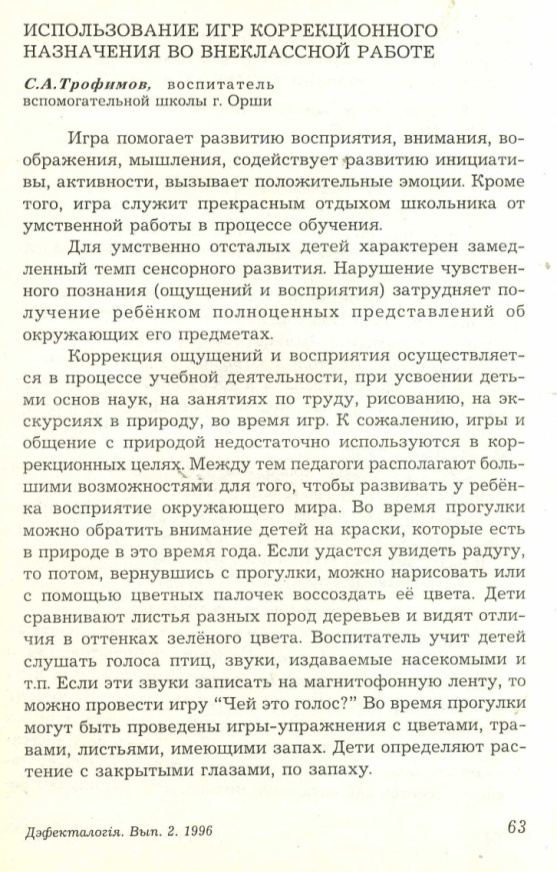 У гэты ж перыяд пачынаецца пісьменніцкая дзейнаць Сяргея Анатольевіча Трафімава. У 1996 годзе з’яўляецца першы артыкул у часопісе “Дефектология”.