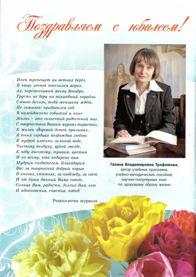 А яшчэ ў снежні 1997 года ў часопісе была надрукавана праграма “Здаровы лад жыцця”. З тых часоў публікацыі Галіны Уладзіміраўны пастаянна можна знайсці на старонках гэтага часопіса. Больш за тое, Г.У. Трафімава з'яўлялася членам рэдкалегіі гэтага часопіса.